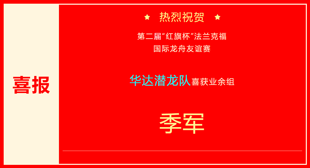 龙舟竞渡 谁与争锋--热烈祝贺华达潜龙队喜获第二届“︁红旗杯”︁法兰克福国际龙舟友谊赛业余组季军