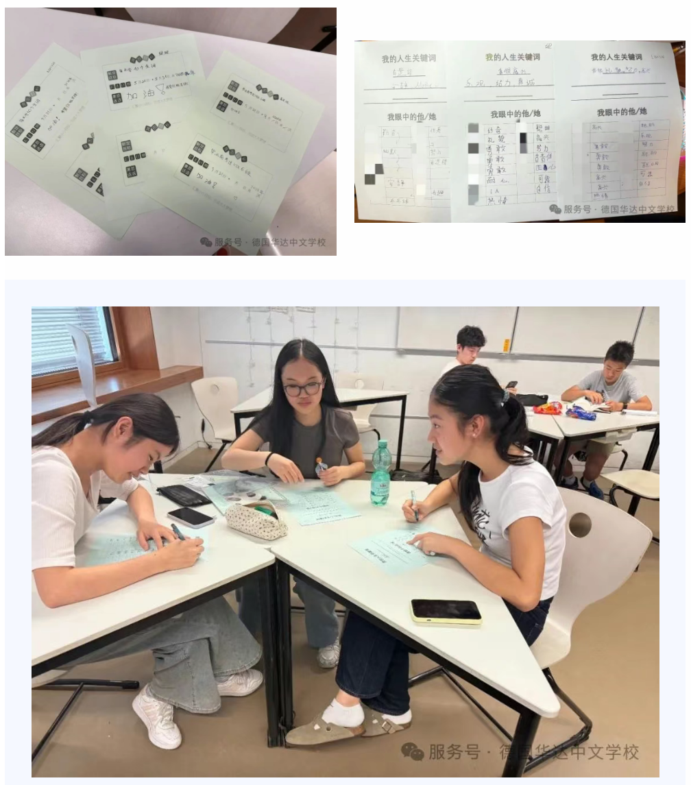 当回忆浸润眼眶,活动迎来最动人的篇章。少年们回到教室,郑重地写下自己的人生关键词,并为同窗好友描绘“我眼中的他/她”。这些承载着当下思考与期许的文字,连同设定的三年后中文学习目标,一同被再次封存进时光胶囊中,静待毕业之时再度启封。