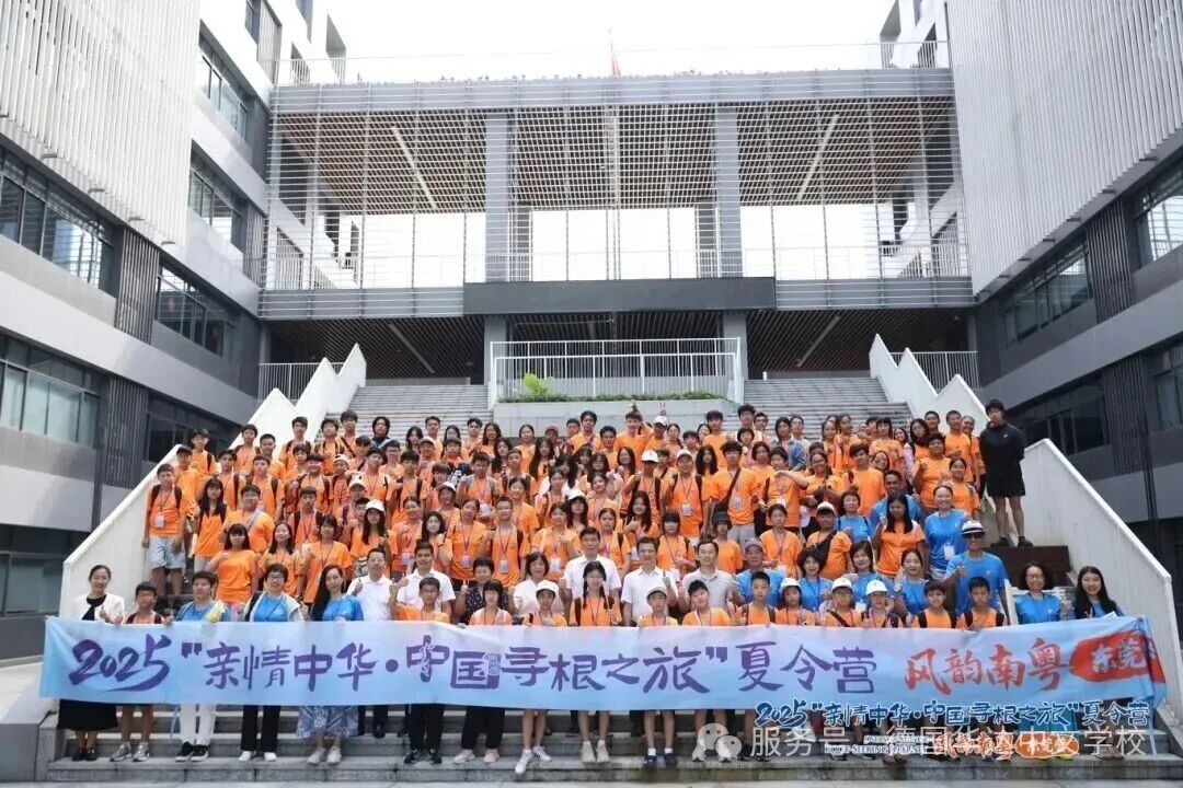 盛夏骄阳似火,岭南文脉如潮。由中国侨联主办,广东省侨联、东莞市委统战部、东莞市侨联联合承办的2025“亲情中华·中国寻根之旅”夏令营(风韵南粤东莞营)在东莞南城商务区北部学校举行开营仪式。来自美国、加拿大、澳大利亚、法国、德国、瑞士、捷克、奥地利、希腊和塔希提岛等10个国家、地区的126名海外华裔青少年与10名东莞本土营员齐聚一堂,以“科技与人文交织,探寻湾区根脉”为主题,共同开启一场为期10天、科技与人文交织、传统与现代交融的沉浸式文化探索之旅。