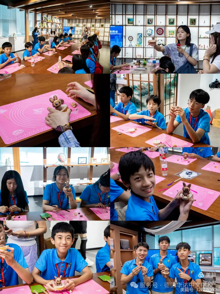 面塑工坊里,色彩斑斓的面团在老师傅手中仿佛被赋予了生命。师傅口中讲述着面塑自汉代“俑”演变而来的悠久历史,手中已灵活地捏、搓、揉、刻,顷刻间,憨态可掬的生肖或灵动的人物便跃然掌上。营员们纷纷尝试,有的捏塑兔子有的“打造”潮玩,面团在青少年指尖的温度下变得柔软可塑,愈渐生动。