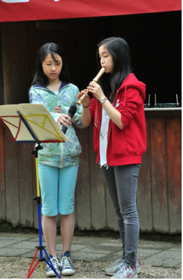 两点半左右,孩子们开始把精心准备的节目呈现给家长。这次节目由汪安娜和张忻言两位小朋友主持。节目开场的是华达成人腰鼓队,她们整齐的服装,激扬的锣鼓声,一下子把会场气氛带到了高潮。人们注意到,这腰鼓队里舞得最欢的是一位帅小伙陈河 华先生。去年夏日联欢脱颖而出的小歌星曹亦肖小朋友这次也不负众望,一曲旋律欢快的“家乡” 赢得了满场喝彩。华达五年级的叶赵炜同学给大家带来了一首英文歌“Simple Plan Untidle”,他虽然是初次登台,但显示了他颇有实力的演唱功底。两位主持人的长、短笛演奏也为联欢增色不少。最让家长们兴奋的是张方语、曹亦肖两位小朋友为大家表演的诗朗诵“四季的风“。两个七岁的小姑娘手持话筒,有模有样,用极其标准的普通话韵味十足的把一首长诗活灵活现地呈现给大家,博得了最为热烈的掌声和欢呼声。